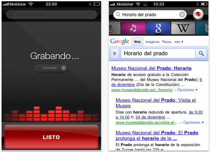 Dragon Seach permite hacer búsquedas mediante la voz aplicación para el iphone